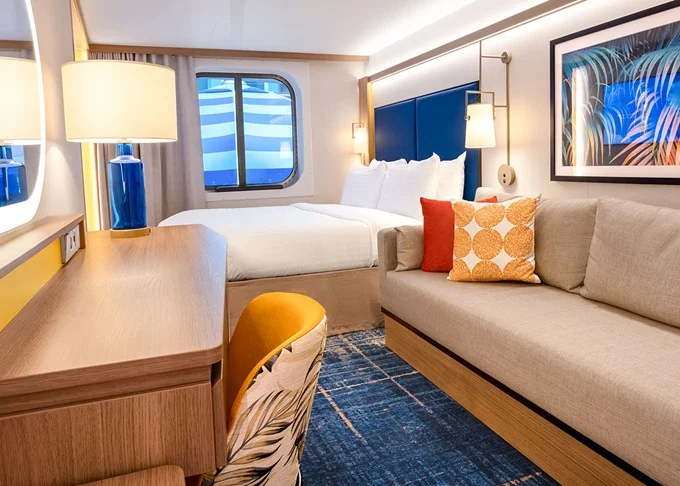 T5 - Vnútorná kajuta s oknom / Surfside Family 17 m². Neotvárateľné okno s výhľadom na štvrť Surfside. 8. paluba vpredu. Max 3-4 osoby. 3 759 € 1 253 € za osobu