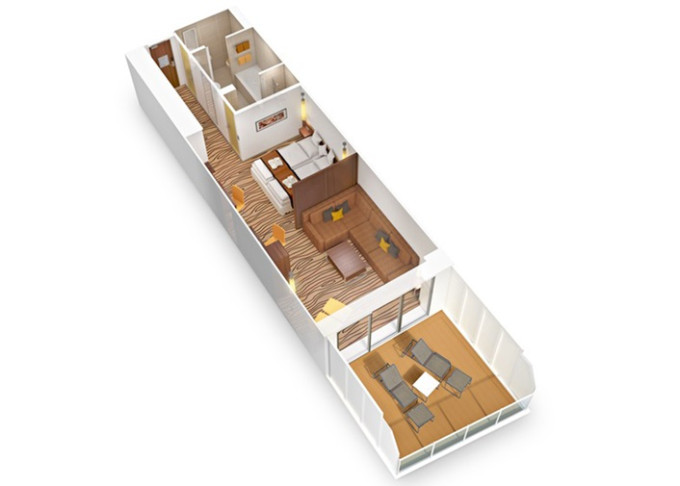SA - Suite Deluxe PREMIUM 43 m² / 72 m² balkón. 12. paluba. Max 4 osoby. Cenový model Premium + výhody Suite. 5 530 € 2 765 € za osobu