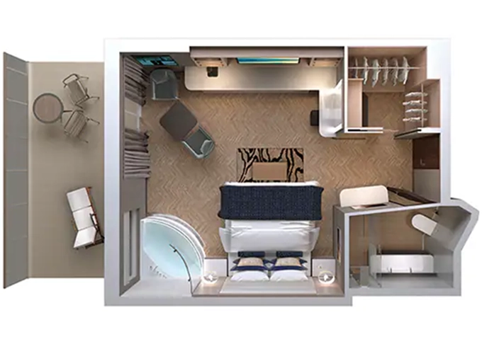 HE - The Haven Courtyard Penthouse od 34 m² / balkón od 9 m². 17,18. paluba vpredu. Max 3 osoby, Výhody The Haven. 10 560 € 5 280 € za osobu