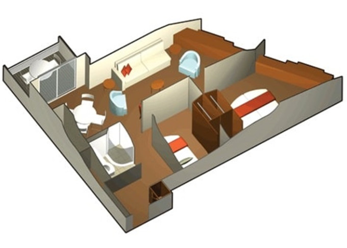 | CS - Celebrity Suite 37 m² + balkón 10 m². 10,11. paluba. Max 4 osoby.Výhody Suite. | 7 176 € 3 588 € za osobu | ||