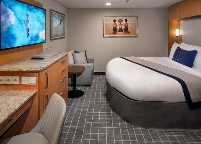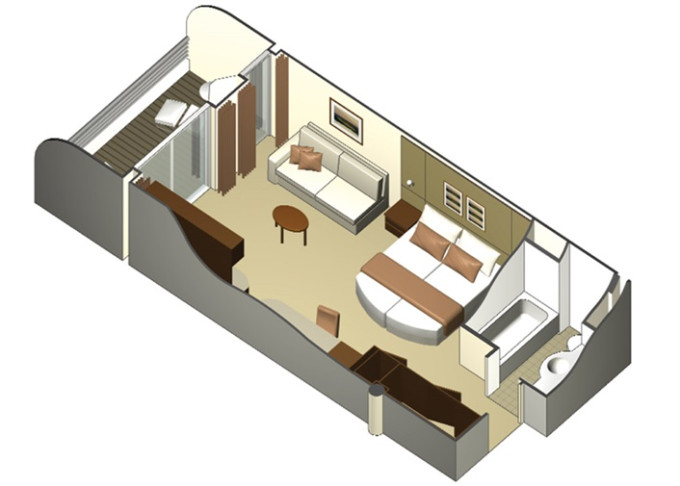 - Kajuty sú umiestnené v blízkosti lodného Spa. K ich vybaveniu patrí posilnený systém vzdušnej filtrácie, posteľ Queen-Size (v kategóriách Edge King-Size), veľké zasúvacie sklenené dvere, exkluzívne posteľné prádlo eXhale®, veľkorysé skladovacie priestory.