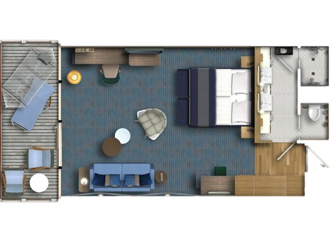 | JKAO - Junior Suite s balkónom 26 m² + balkón 7 m² so stolom. 10,11. paluba. Max 4 osoby. Výhody Junior Suite. | 15 598 € 7 799 € za osobu | ||