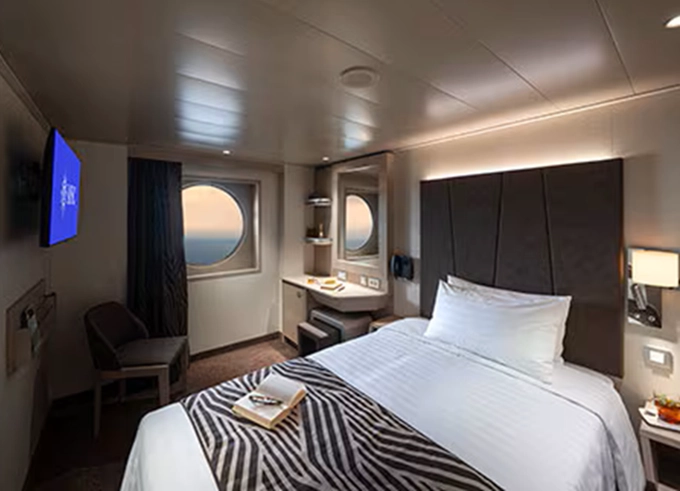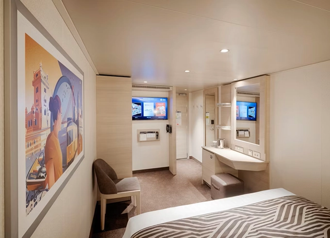 - Ubytovanie v plne vybavenej kajute: vlastná kúpeľňa so sprchou a WC, interaktívna TV, telefón, safe, sušič na vlasy, regulovateľná klimatizácia, minibar (za poplatok). Pripojenie na internet cez Wi-fi (za poplatok)